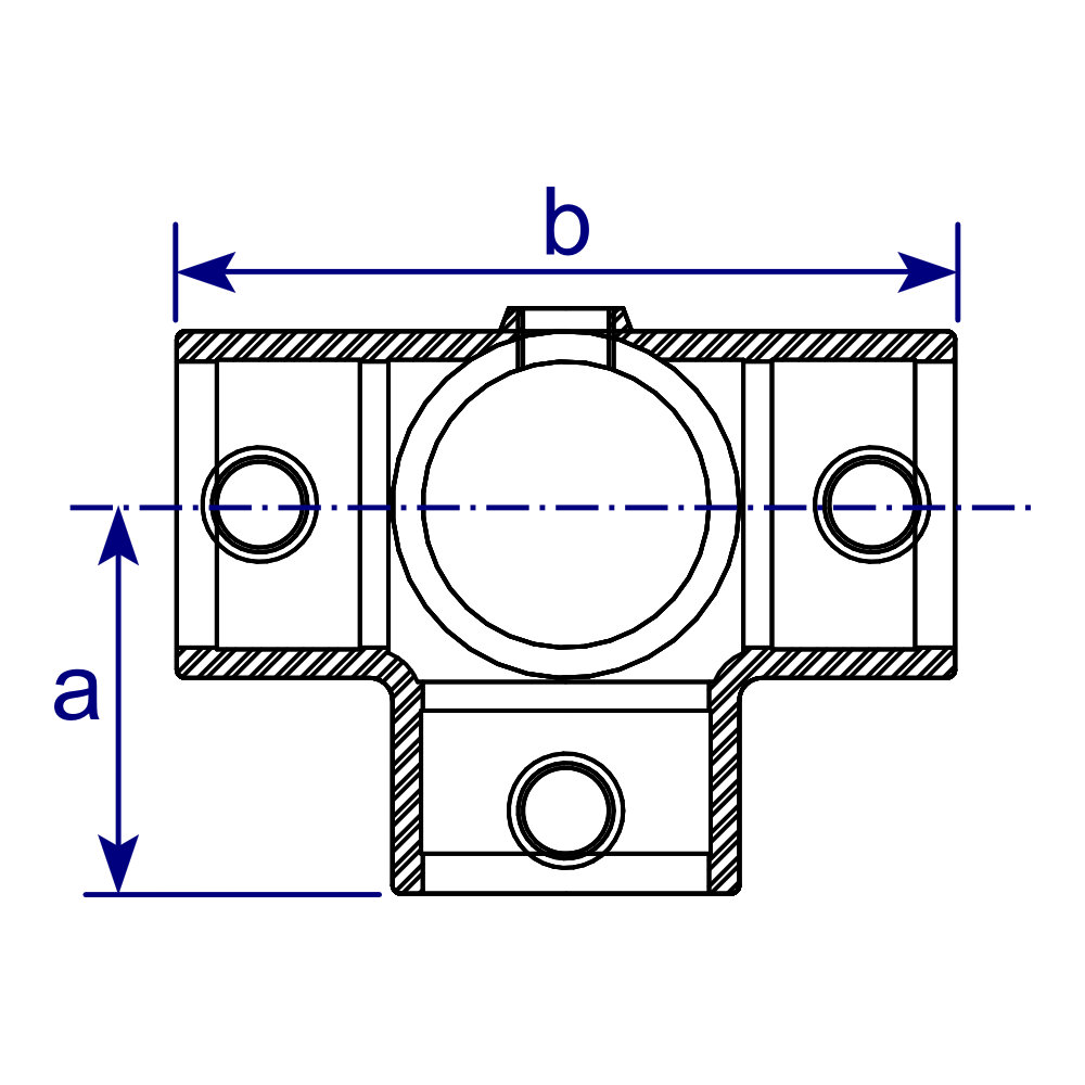 Often used in large tubular structures with the upright passing through the fitting. The through tube (vertical in photo) cannot be joined within the fitting.